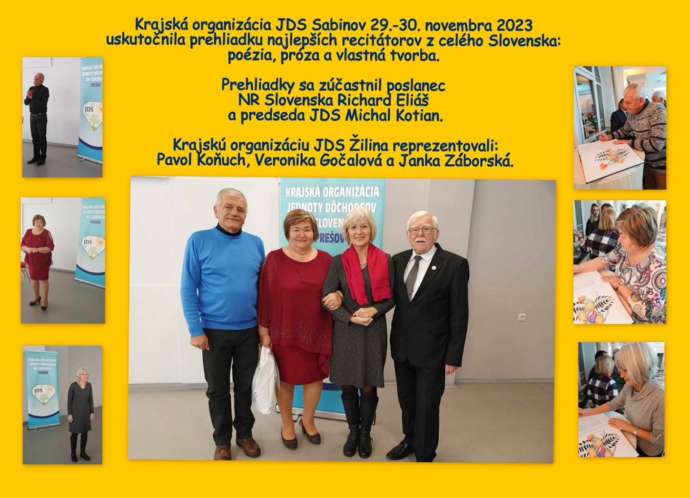 V Sabinove sa uskutočnila dňoch 29. a 30. 11. 2023 Celoslovenská prehliadka recitátorov JDS