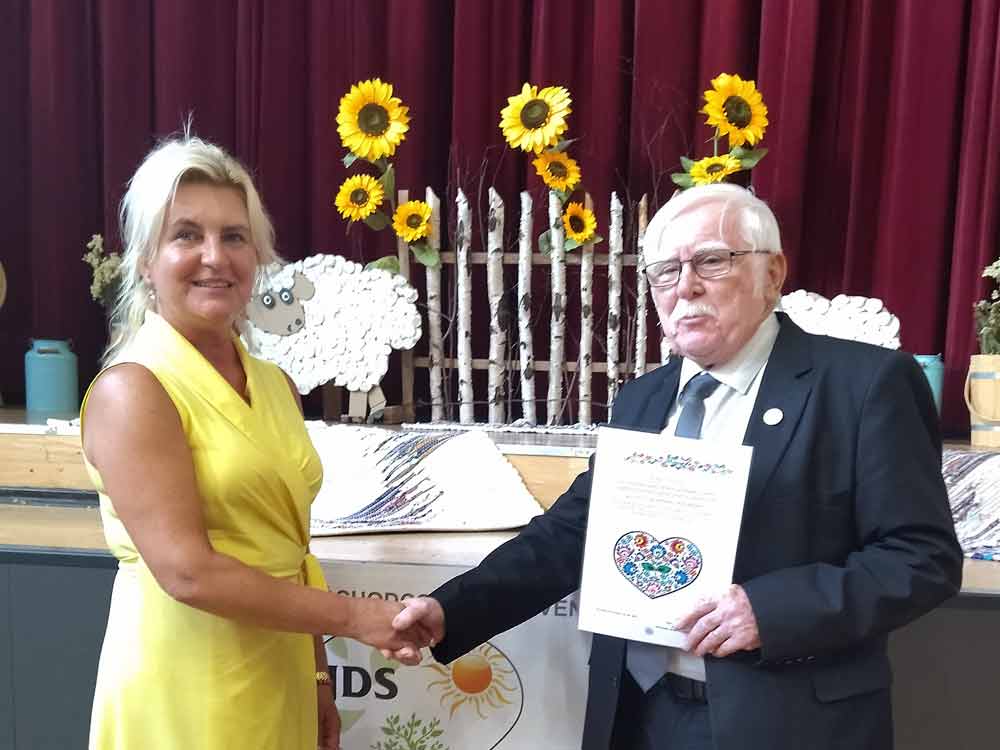 Poďakovanie z rúk prednostky Mgr. Marcely Liskovej predsedníčke OO JDS Božene Minárikovej