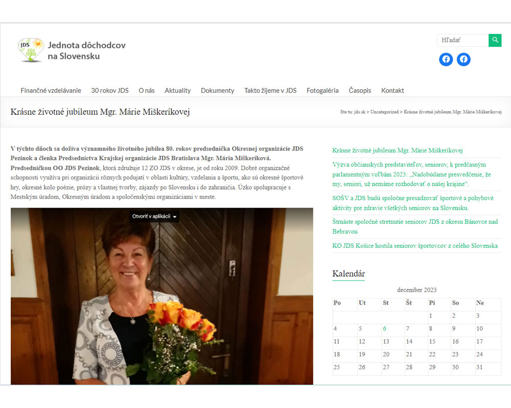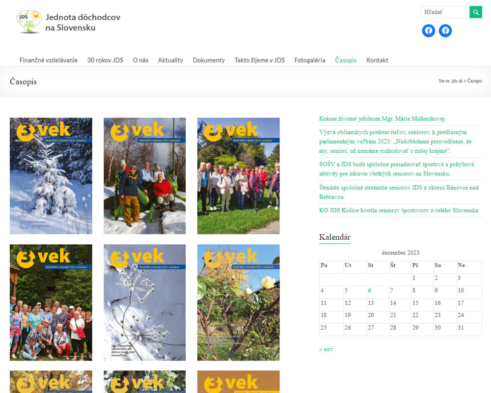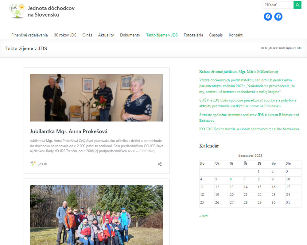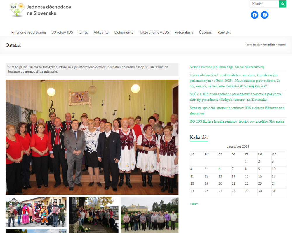 Od 7. 12. 2023 máme novú internetovú stránku. Tu je niekoľko snímok obrazovky starého webu.