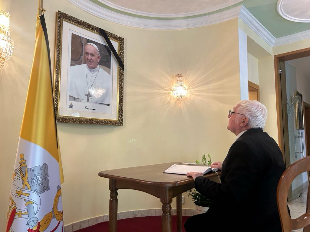 Kondolencie môžu občania pápežovi vyjadriť písomne aj na Slovensku. Apoštolská nunciatúra vystavila kondolenčnú knihu a bude k dispozícii do utorka 29. apríla od 9:00 do 18:00 hodiny.