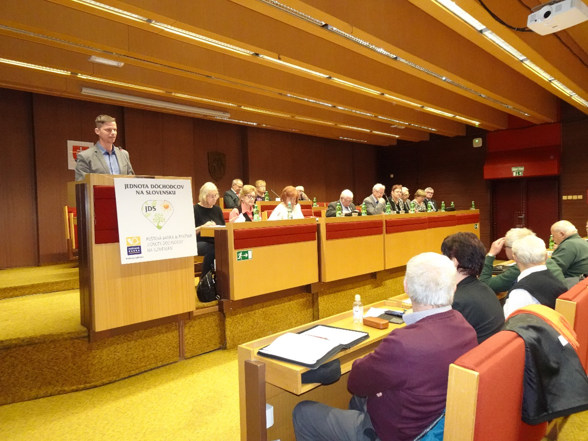 Ešte pred pracovným rokovaním RR udelil slovo p. Ľubošovi Triznovi, zástupcovi primátora hostiteľského mesta, ktorý tlmočil srdečné privítanie mesta Liptovský Mikuláš seniorom z celého Slovenska a poprial RR úspešné rokovanie. Zdôraznil potrebu ústretových medzigeneračných kontaktov ako aj význam pozitívneho vplyvu a množstva životných skúseností staršej generácie seniorov na mladých. Pochválil sa aj aktuálnou lyžiarskou novinkou mesta, a to postupnou obnovou lyžiarskeho strediska na východnom svahu Hája na okraji Podbrezín, kde partia nadšencov spolu s mestom, Združením športových klubov Jasná a Ski Teamom Vlha pracujú na tom, aby ho vrátane vleku znovu oživili. Na tomto stredisku vyrastala aj slovenská lyžiarska hviezda Petra Vlhová, preto bude niesť jej meno.