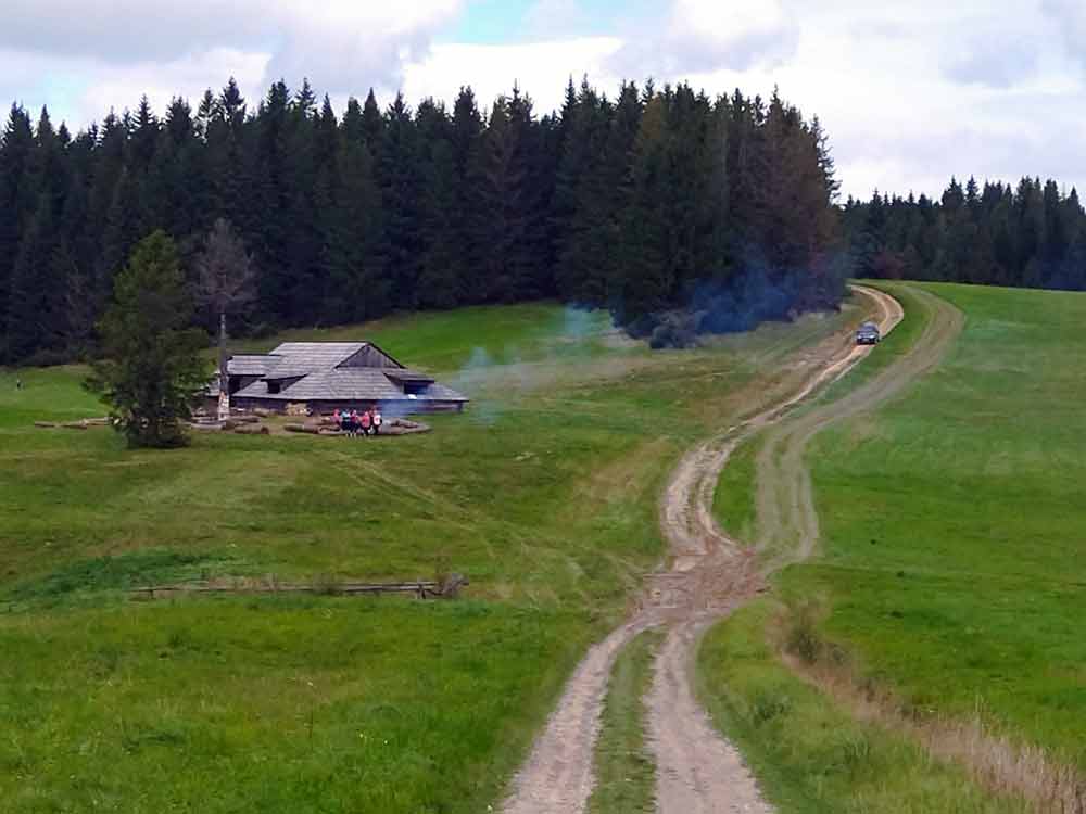Turistická túra smerovala na tzv. „filmársku pajtu“ - obnovenú útulňu na Grúni, kde sa natáčali aj niektoré známe slovenské filmy - napríklad Sokoliar Tomáš, Perinbaba, či Jozef Mak. Pajta –drevená stavba, kde v minulosti bačovia ukrývali svoje ovce pred nepriazňou počasia – sa nachádza na rozhraní Malatinského a Veľkoborovského chotára, na východ od Malatinej.
