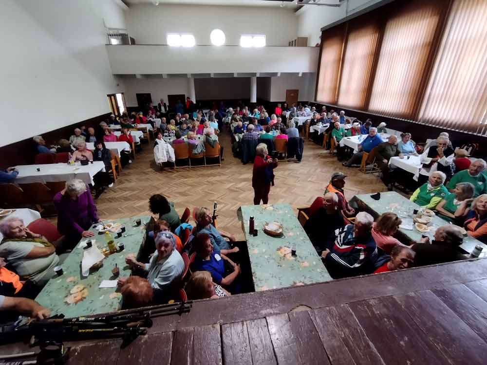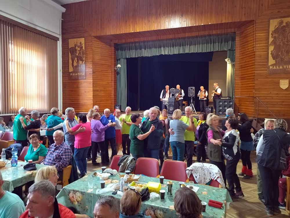 Po návrate do kultúrneho domu v obci čakal všetkých chutný a výdatný guláš, ktorý od rána navarila domáca partia „kuchárov“ a ďalšie občerstvenie, vrátane koláčikov, ktoré napiekli seniorky zo ZO JDS v Malatinej. No a keďže nechýbala ani muzika tak sa aj spievalo a tancovalo.